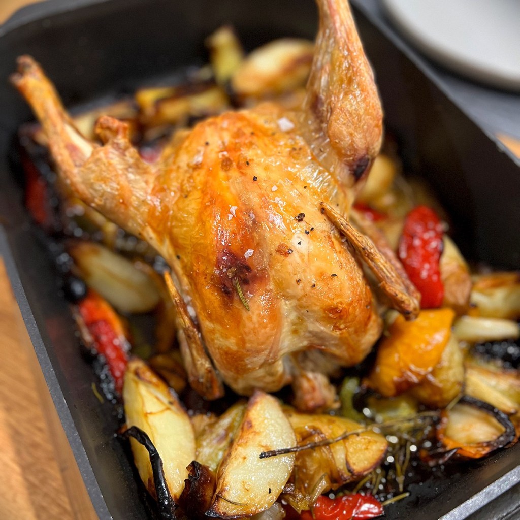 Cacio è Pepe (cheese and pepper in Italian) is one of my favourite pasta dishes, it’s so easy and always handy if you only have pantry items on hand. This recipe combines the comfort of crispy skinned chicken with the cheesy pasta. Inspired by recipes of my favourite food writer Diana Henry and her use of orzo (or risoni), one of my favourite types of pasta, it’s a one pan comforting meal that means less washing up!