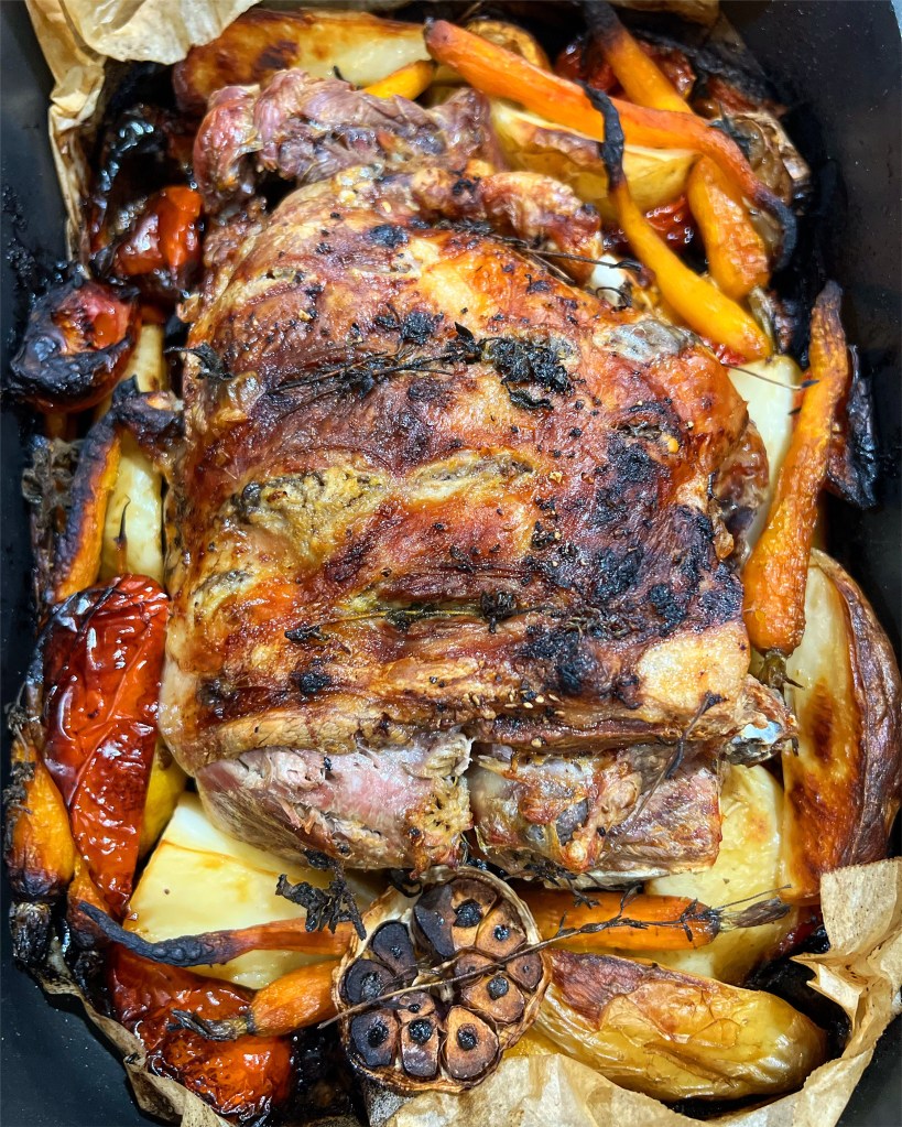 Greek Slow Roasted Leg of Lamb with Vegetables